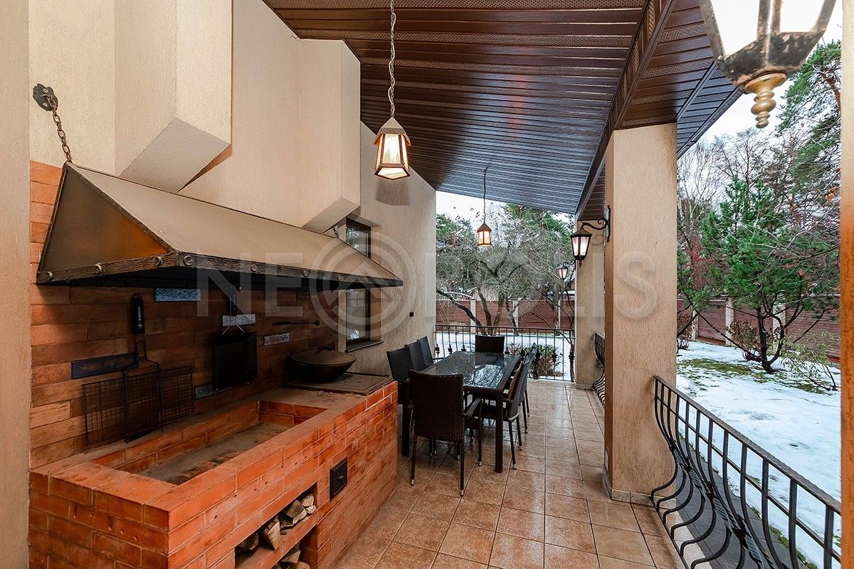 К дому пристроена крытая веранда, с обустроенной полноценной зоной барбекю.