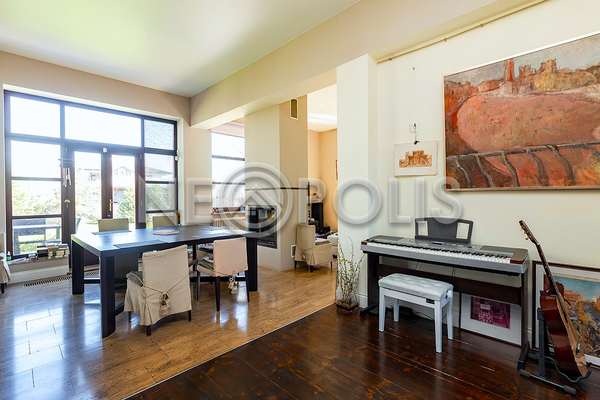 Объект расположен в комфортном для проживания поселке, на благоустроенном участке с видом на лес и ландшафтным дизайном. Полностью готов к круглогодичному проживанию. Отделка выполнена в классическом стиле из дорогих натуральных материалов.