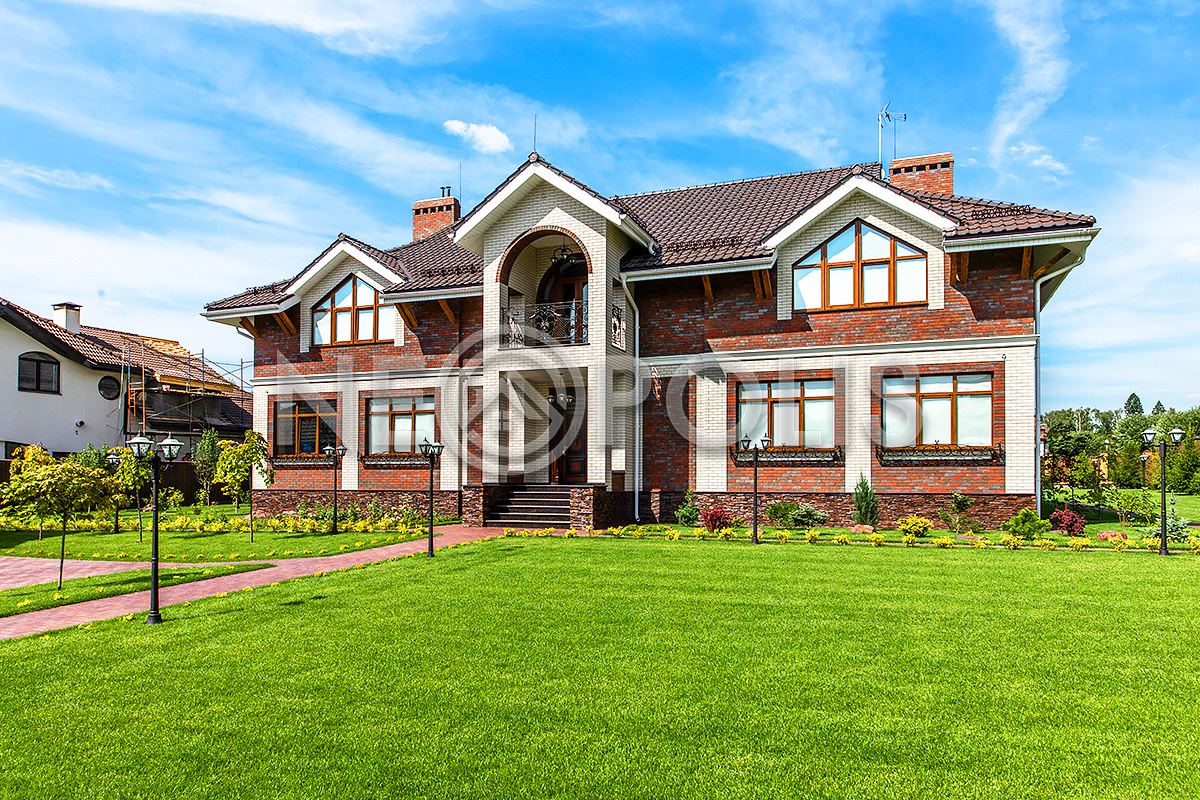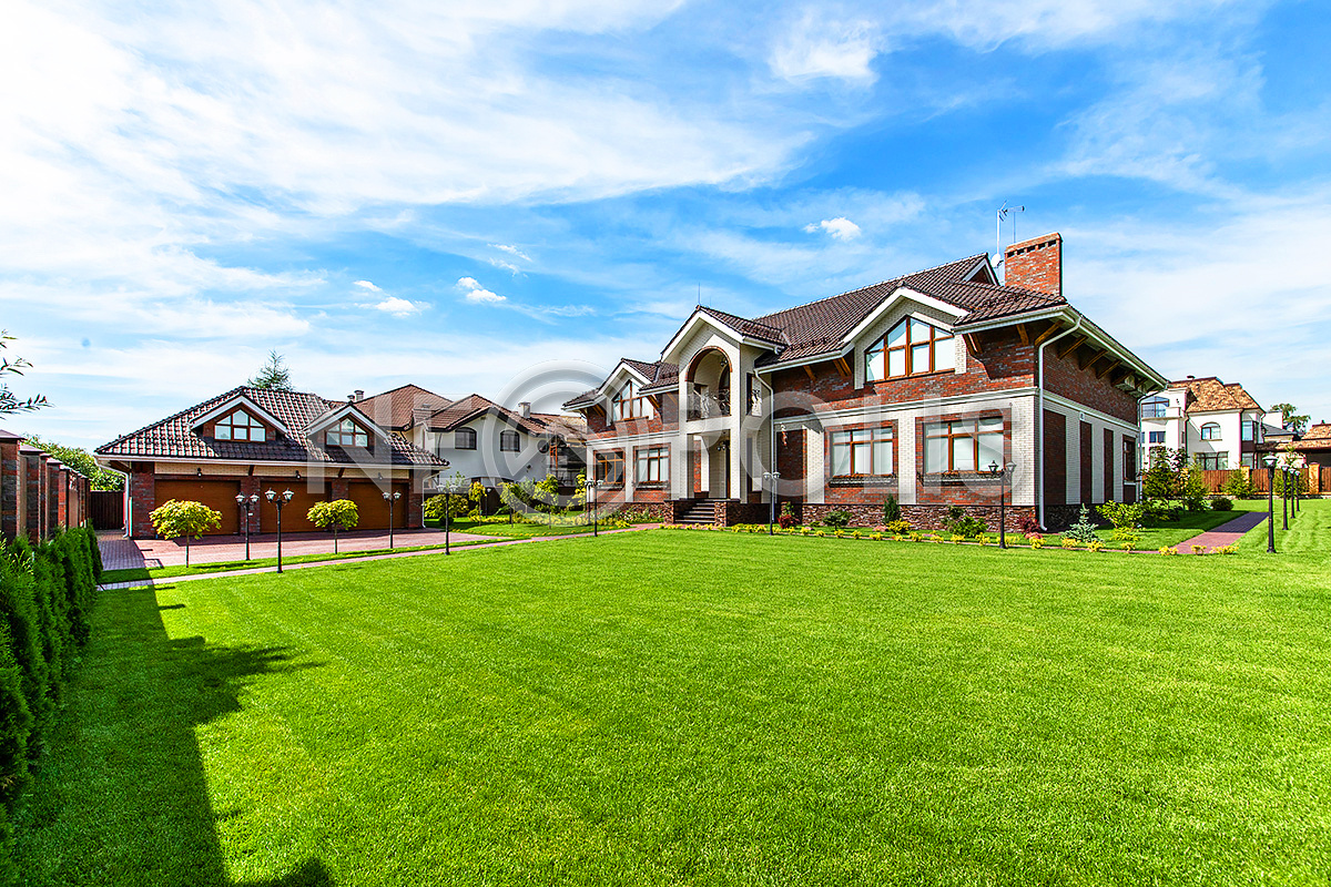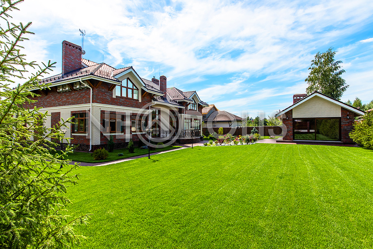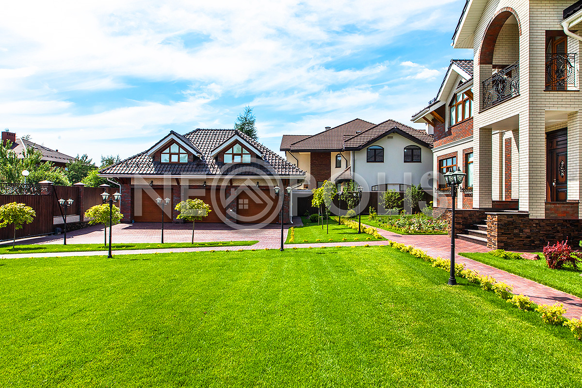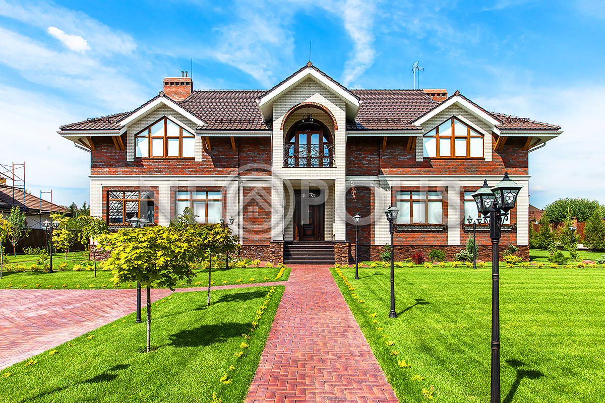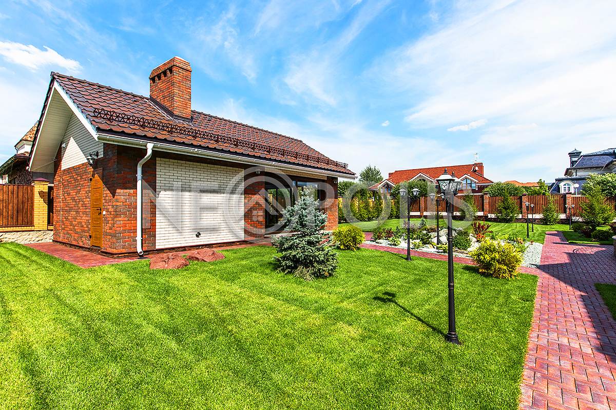 Дорожки вымощены брусчаткой, выполнен дренаж вокруг дома, есть уличное освещение.
