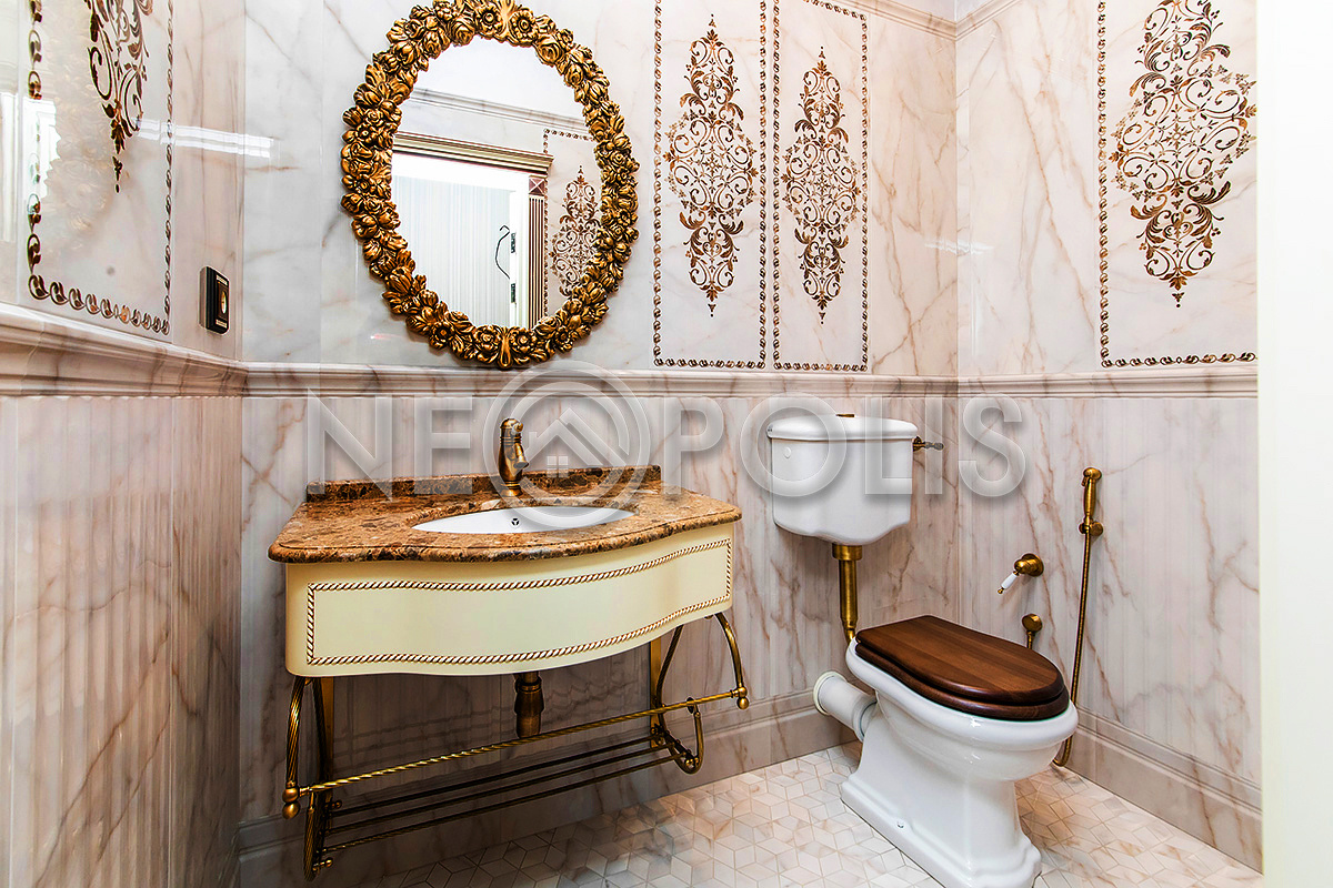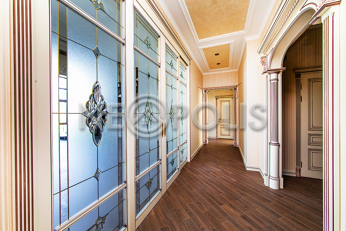 - Внутренняя отделка стен: английские обои и декоративная венецианская штукатурка