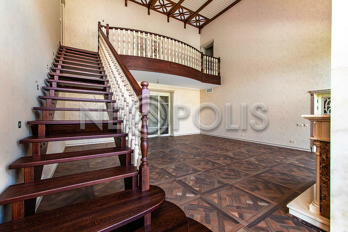 - Лестница: деревянная (дуб) с подсветкой