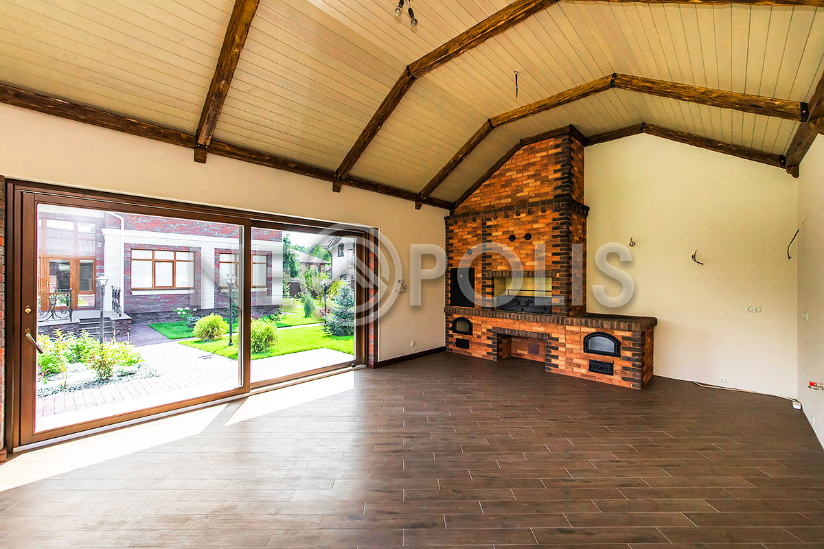 Отапливаемая зимняя беседка с зоной барбекю 53 кв.м. (выполнена в едином стиле с домом).