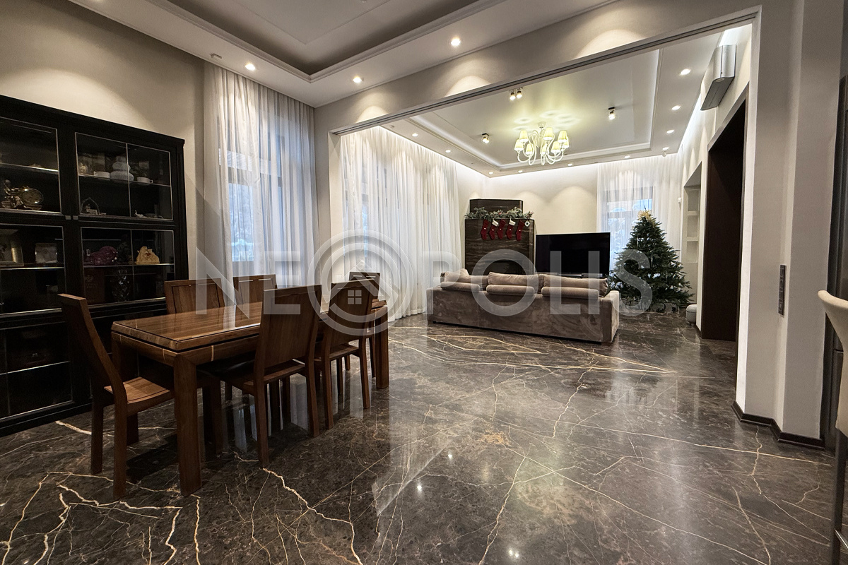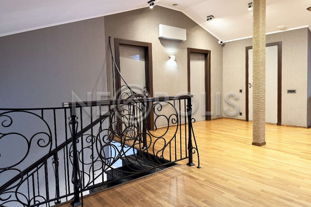 Объект расположен в комфортном для проживания поселке, на благоустроенном участке с видом на лес и ландшафтным дизайном. Полностью готов к круглогодичному проживанию. Отделка выполнена в классическом стиле из дорогих натуральных материалов.