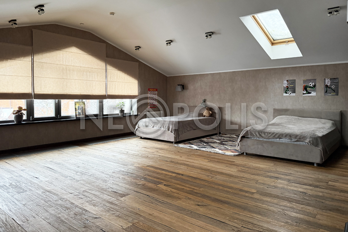 - 3-й этаж:большая спальня с мансардными окнами, две отдельные спальни, санузел