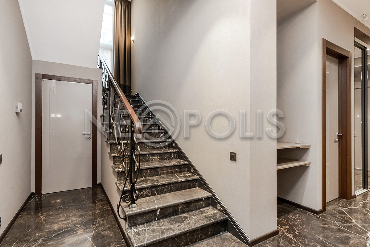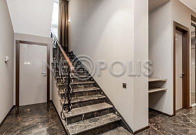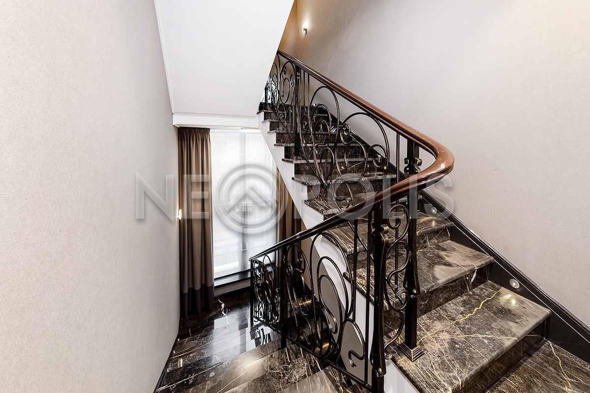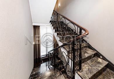 - лестница монолитное основание, отделана мрамором, кованные перила