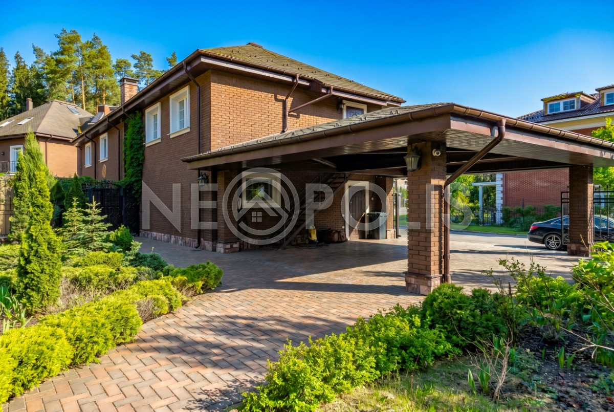 - Навес на 2 автомобиля. К дому примыкает закрытая зона барбекю с печью (48 кв.м.), с санузлом и кладовой.