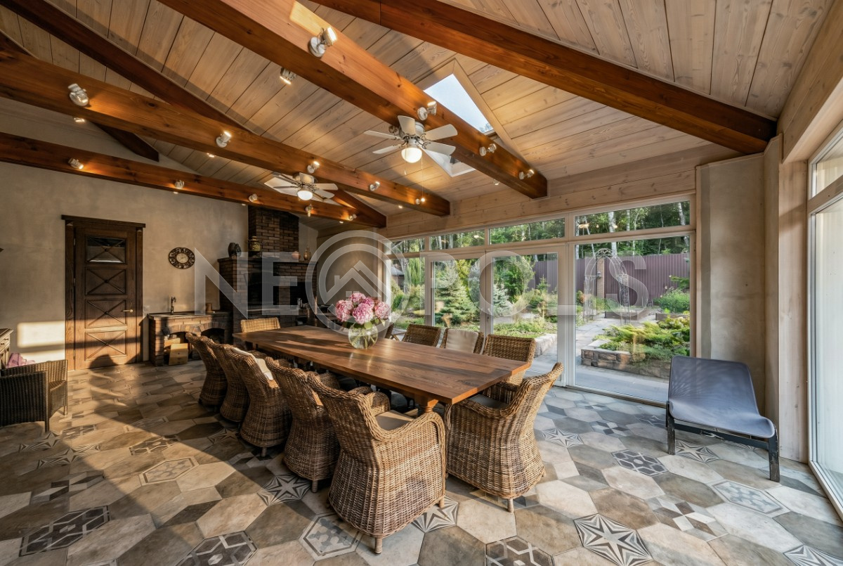 Объект расположен в комфортном для проживания поселке, на благоустроенном участке с видом на лес и ландшафтным дизайном. Полностью готов к круглогодичному проживанию. Отделка выполнена в классическом стиле из дорогих натуральных материалов.