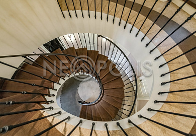 - Лестница монолитная, отделка натуральным деревом
