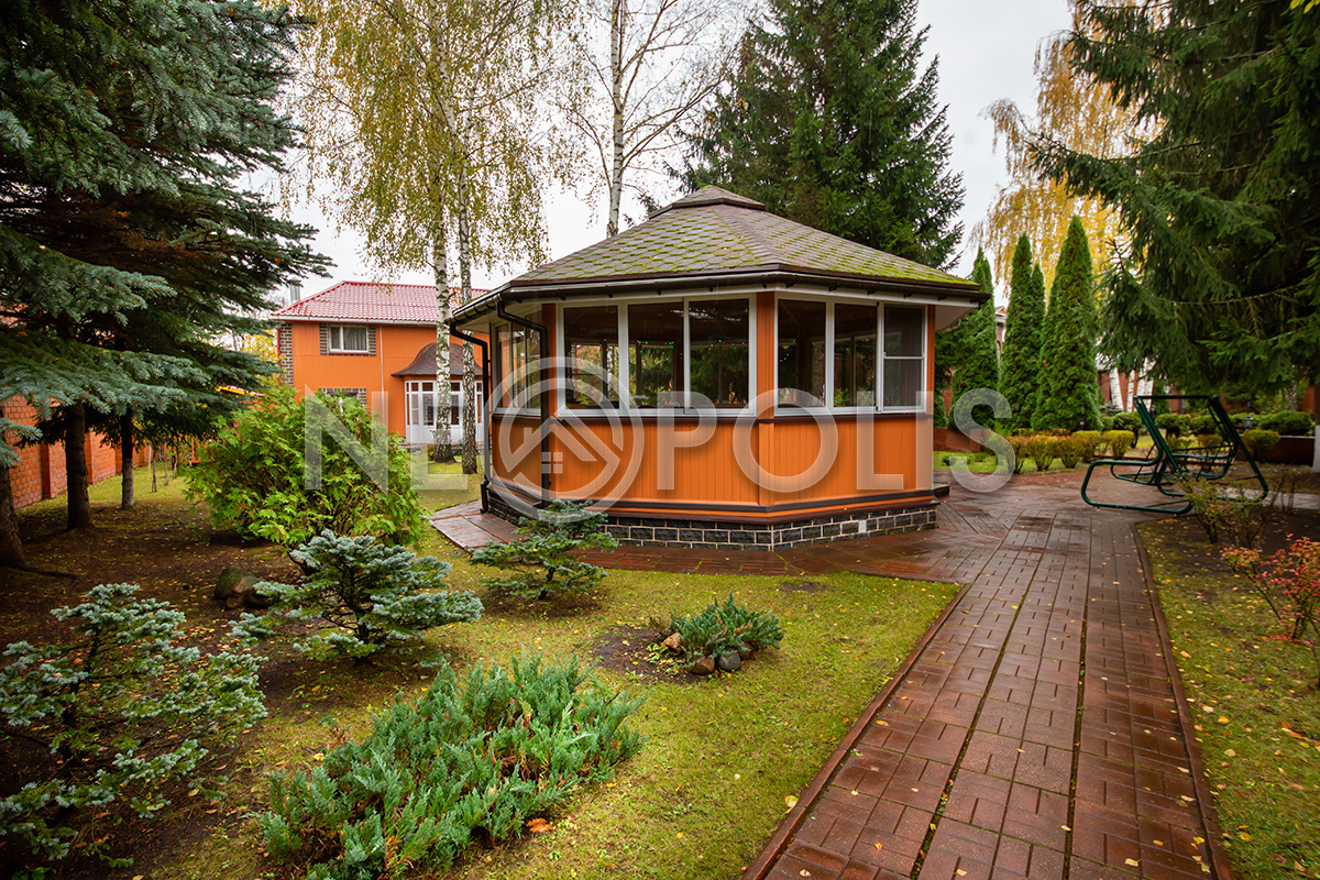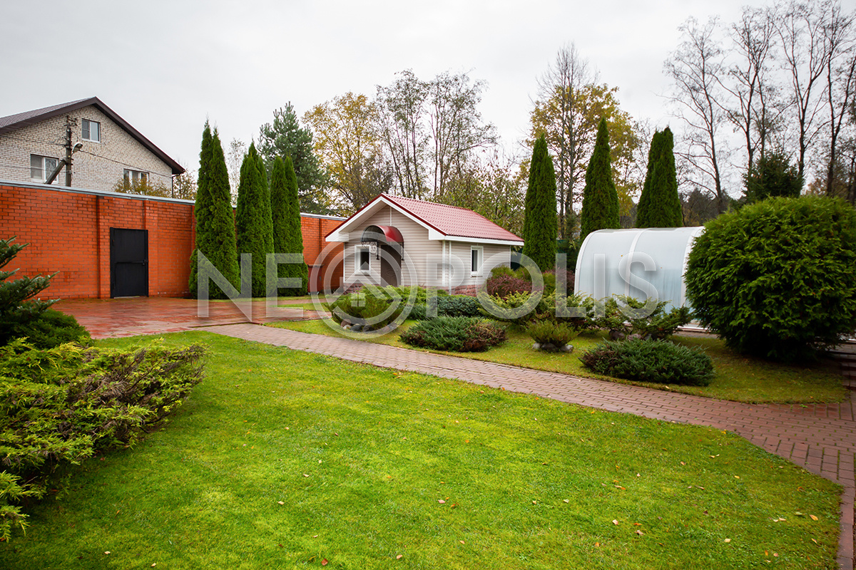 На участке выполнен дренаж, установлена система автоматического полива, разведено уличное освещение участка.