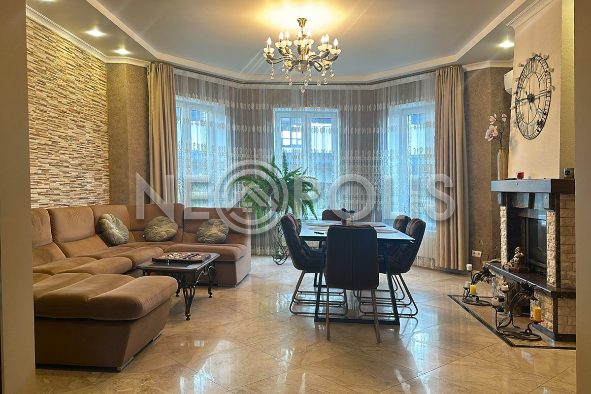 - 1 этаж:просторный холл, кухня, столовая, гостиная с камином и выходом на террасу, спальня, кабинет, 2 санузла, котельная.