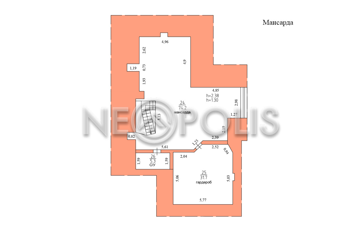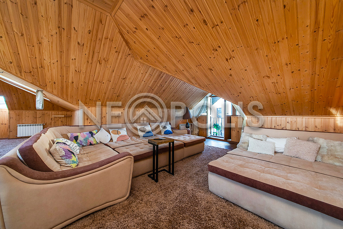 - Мансарда:лаунж зона 74,2 кв.м., гардеробная, санузел.