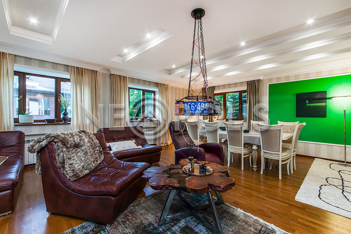 Объект расположен в комфортном для проживания поселке, на благоустроенном участке с видом на лес и ландшафтным дизайном. Полностью готов к круглогодичному проживанию. Отделка выполнена в классическом стиле из дорогих натуральных материалов.