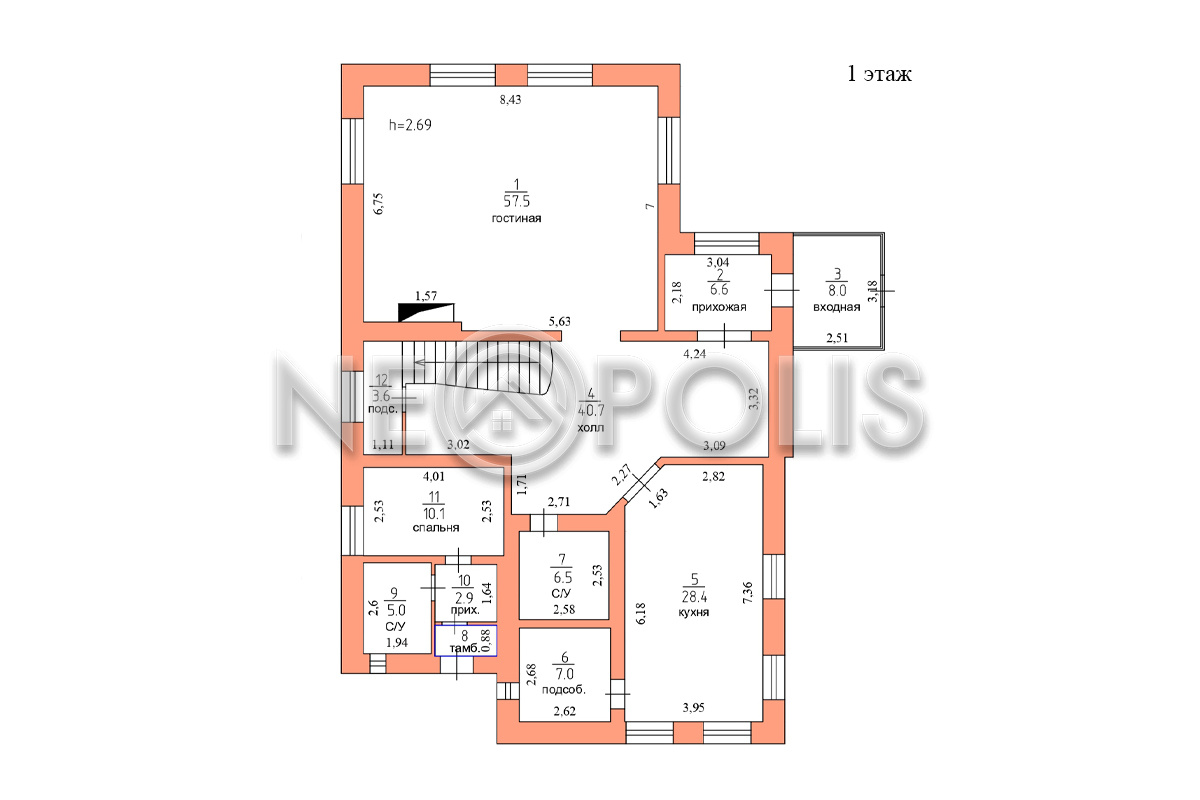 1 этаж: кухня-столовая с зоной барбекю, гостиная, SPA зона: бассейн, сауна, санузел, кладовая, бойлерная.