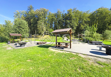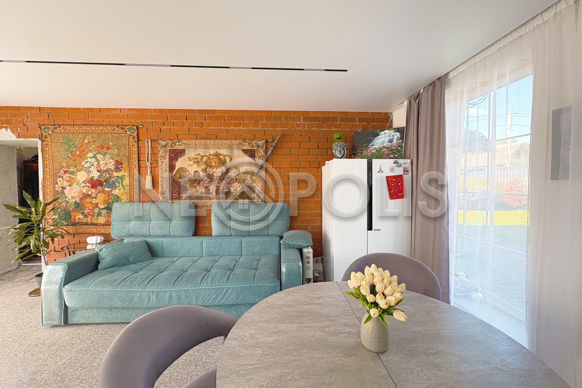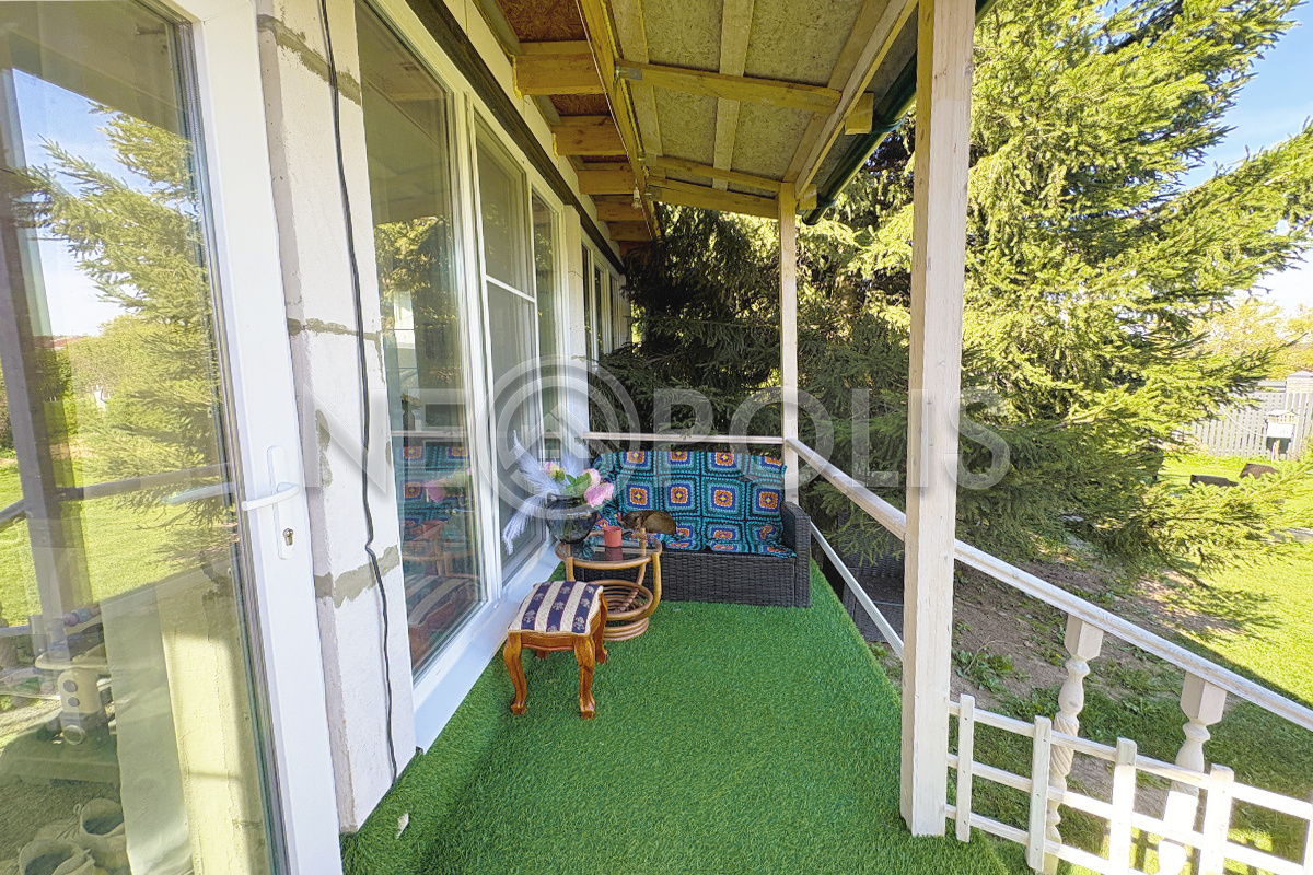 - 1 этаж:прихожая, кухня-столовая, застекленная терраса с обеденной группой (с дополнительным входом с улицы), спальня, санузел.