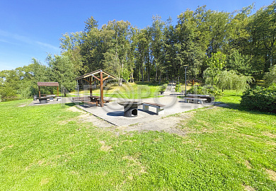 Разноуровневый участок огорожен забором по периметру. Вход на территорию с двух сторон.